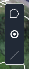 Pro přesná měření jsou k dispozici nástroje polygon, bod a linie díky nimž lze vytvářet tzv. geomy. Volbu těchto nástrojů Těmito nástroji můžete zakreslit daný geom/tvar přímo do mapy a každý nástroj má několik dalších funkcí. Všechny tyto funkce jsou popsány níže (při kreslení těmito nástroji je důležité, na které vrstvě daný tvar zakreslujete).